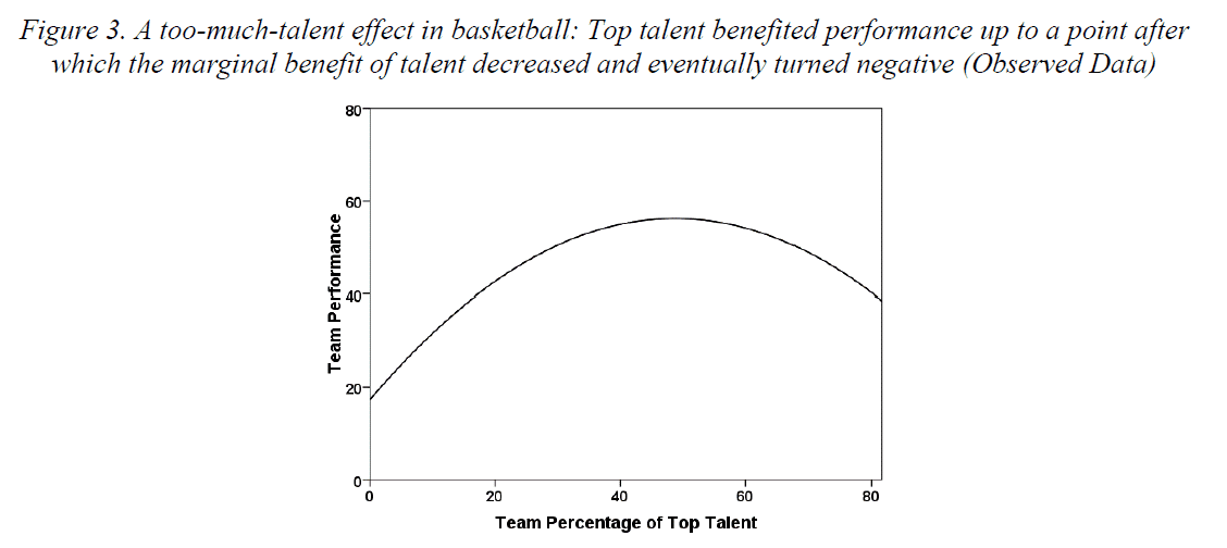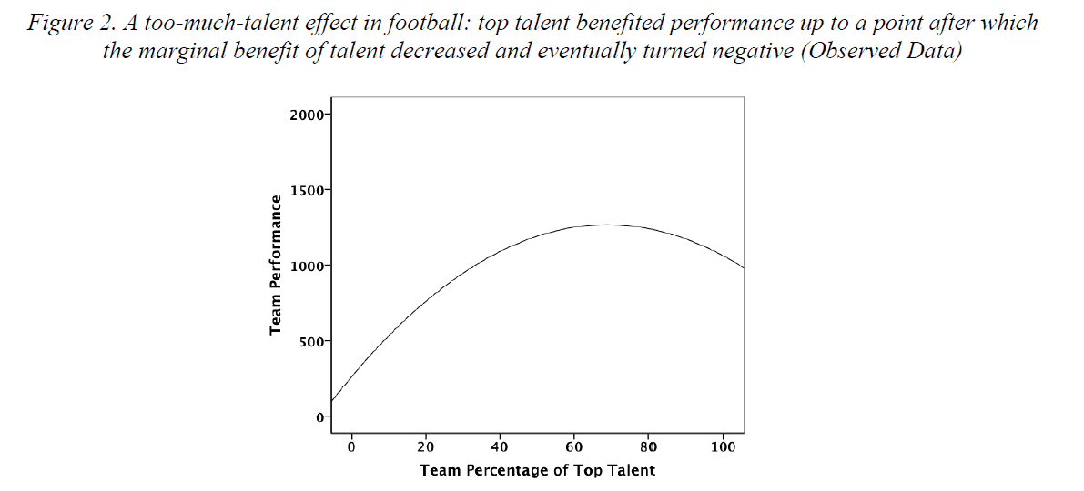 In highly interdependent teams (like football & basketball), performance improves with talent… only up to a point.